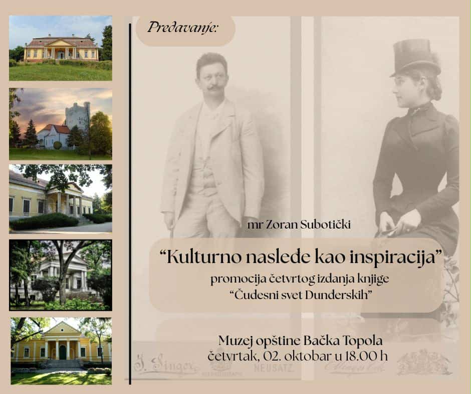 Ismét eljön múzeumunkba mgr. Zoran Subotički, a „Čudesni svet Dunđerskih“ című kötet szerzője. Előadást tart „Kulturno nasleđe kao inspiracija“ címmel. A program jövő csütörtökön, október 2-án lesz 18 órakor.